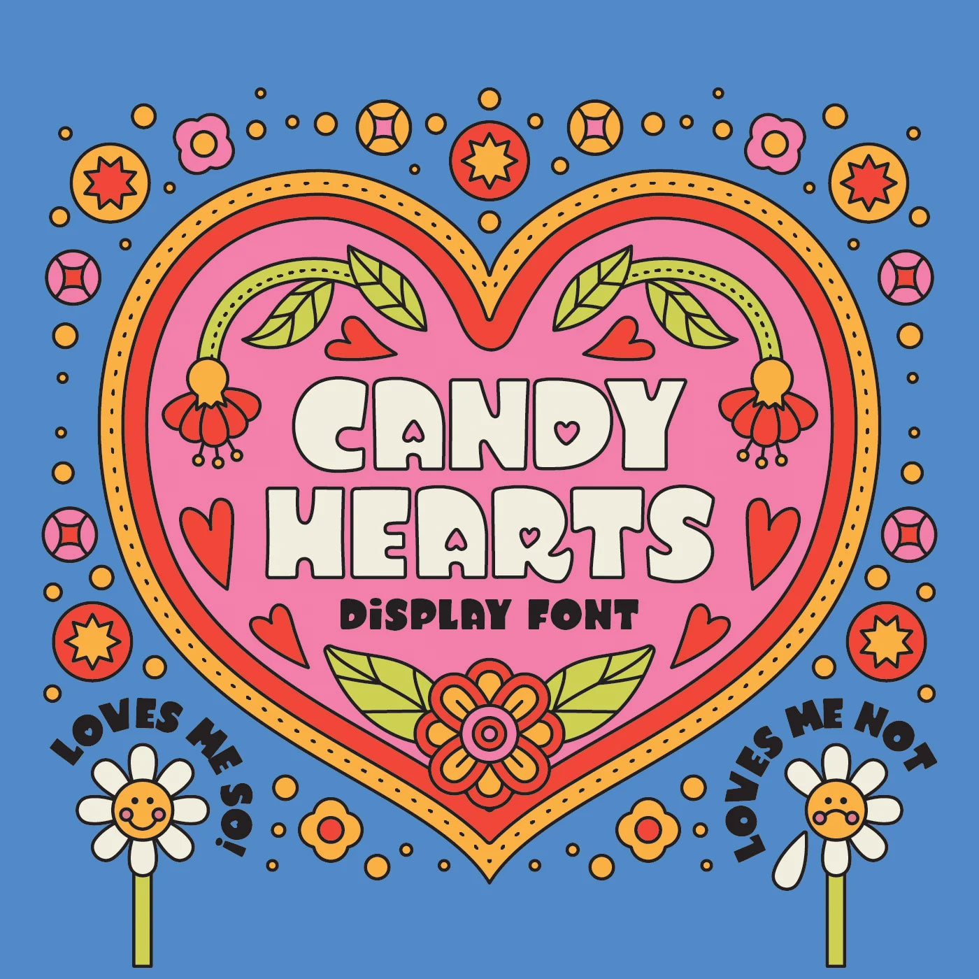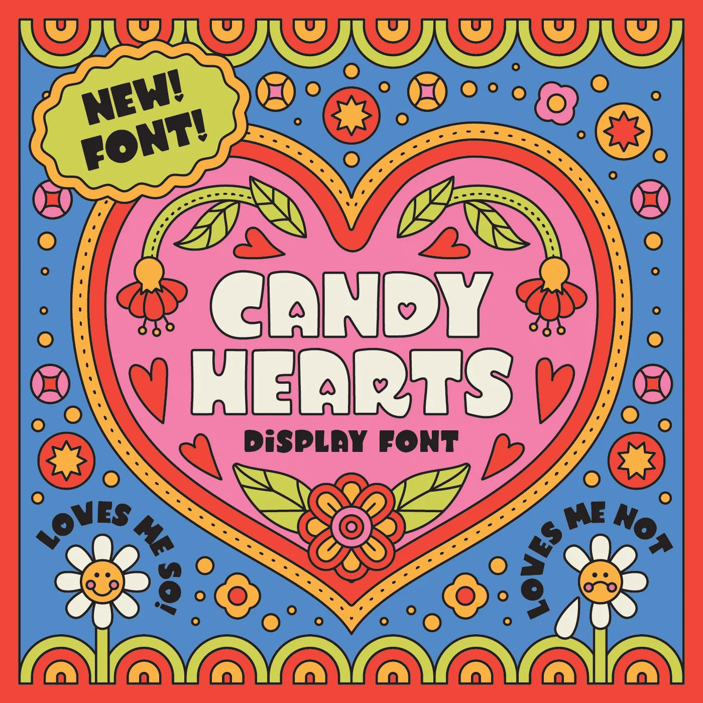 Candy Hearts is a sweet little hand lettered sans with the perfect dose of whimsy. Expressive, chunky, and a touch cartoony, Candy Hearts is all caps with seven alternate "Loves Me Not" lower case characters, a full set of punctuation and numbers, plus more symbols and advanced characters than you can shake a rose at. It also comes with a silly set of printable Valentines, because we just love you that much. Now available for $15!